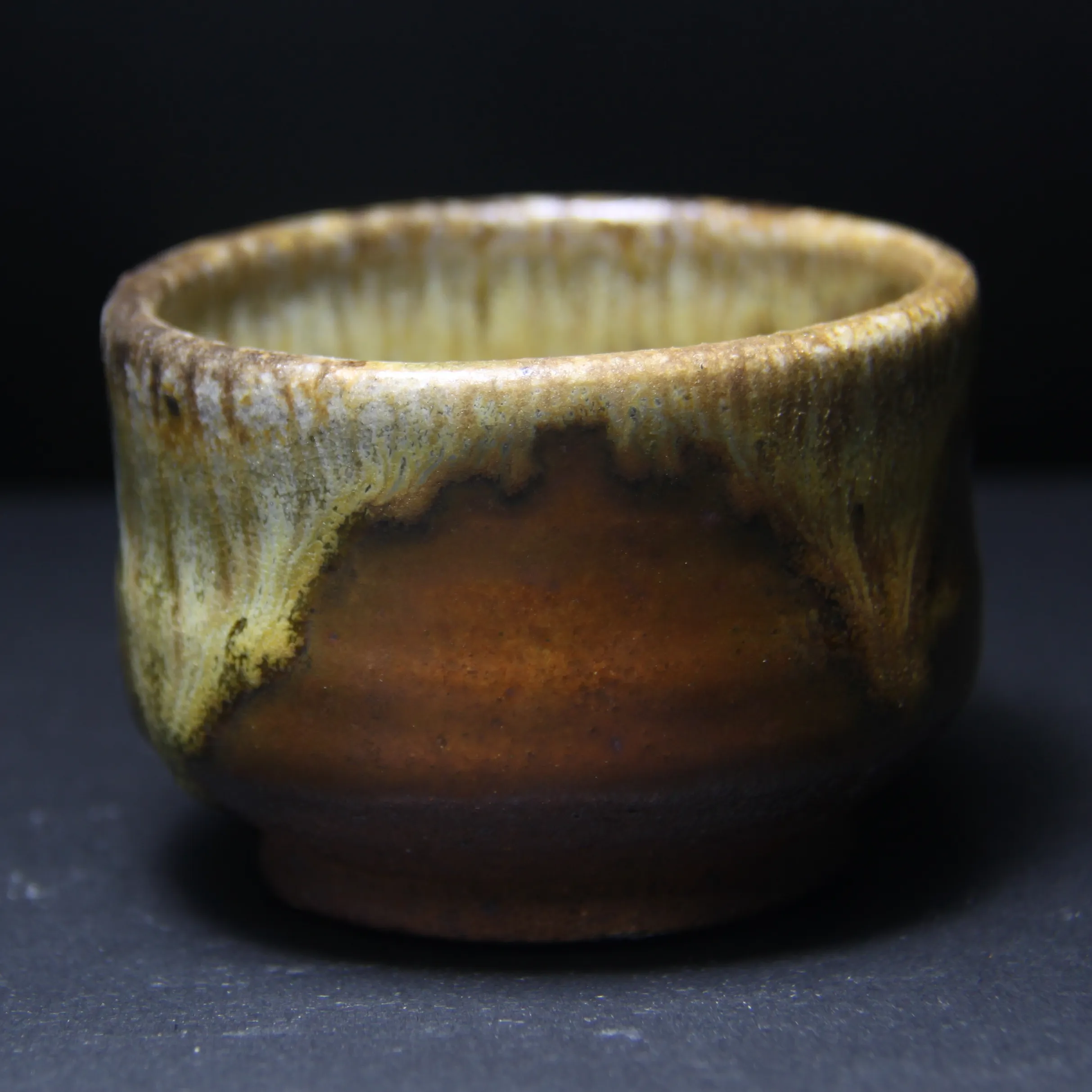 杯体下半部分那抹温润的红褐色,宛如夕阳映照下的,热烈而深沉。 而上半部分那层厚实、垂坠的乳白色灰釉,则像是覆盖在山巅的丹霞地貌皑皑白雪